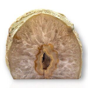 Unique agate crystal bookends with a stunning geode center. At the right angle, these bookends resemble the shape of butterfly wings. Add a touch of natural beauty to your bookshelf or office space with these natural Agate bookends from Brazil. These hand-carved, solid agate gemstone bookends are unique, authentic, and designed to make an impression.
