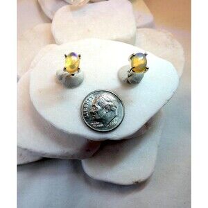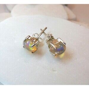 Natural Glowing Australian Opal Sterling Silver Stud Earrings