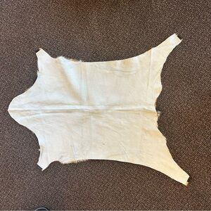 Genuine goat hide rug featuring a striking pattern. Includes shades of black, brown, and cream. Super soft.