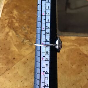This pretty ring is made with a genuine (but tiny) green diamond accent has enamel work to make the ring appear to have more stones in it. It is set in solid .925 sterling silver with a platinum plate to prevent tarnishing. The ring has a low profile and would be comfortable for everyday use. Size 8.