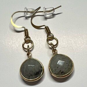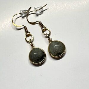 Natural Grey Stone dangle drop earrings in gold-toned setting.