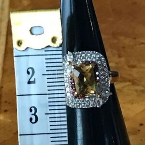 This stunning ring features a genuine 7x5 mm heliodor that was mined in Brazil. The accent stones on the ring are natural brown and white zircons. There are 2 white zircon butterfly accents on the face of the ring, adding additional character and beauty. The ring is set in solid .925 sterling silver with an 18k yellow gold vermeil. The ring in the photos is the actual one you will receive, so please see photos for gemstone quality and measurements. Size 5.