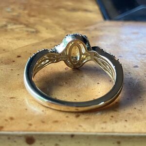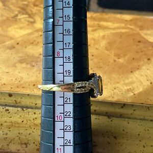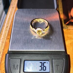 This beautiful ring features a genuine, earth mined Heliodor (yellow beryl) from Brazil. The gemstone measures 8x6 mm. The accent stones are earth mined yellow sapphires and lab created Moissanites. The ring is set in solid .925 sterling silver with an 18k yellow gold vermeil. The ring in the photos is the actual one you will receive, so please see photos for quality and measurements. Size 9.