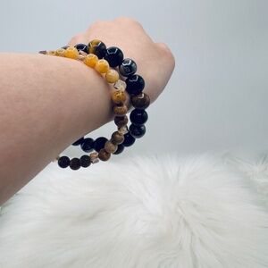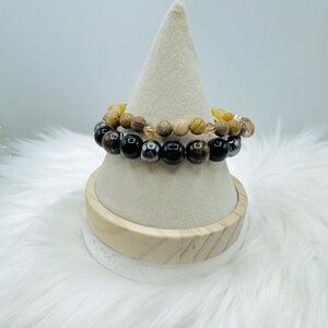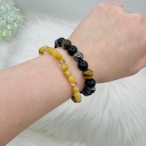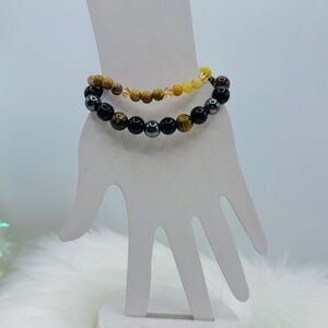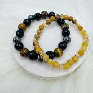 Natural Hematite Yellow Tiger Eye Beaded & Citrine Stone Bracelet Duo