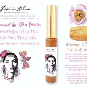 💜 My organic lip gloss boosters are designed to boost the lips by using powerful plant loving skin food ingredients and natures gifts from our sacred wild honey bees. I hand-make my lip glosses in small batches and choose natural mineral micas for beautiful sheer color tints. My main goal is for the health of the lips and body combined, both inner and outer beauty. They are crafted using 99% of fresh edible ingredients, so they taste sweet to the lips and perfect for kisses.