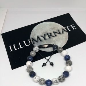 NEW 🚻 Natural 8mm howlite and gray jasper on a draw string to fit most wrists. #ShamballaBracelets, #GemstoneBracelets, #Gemstones, #Howlite, #Jasper