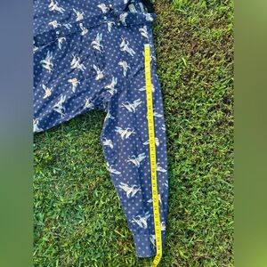 Men’s vintage-style long sleeve button-up shirt by Natural Issue, size 2XLT. Features a unique all-over flying duck print on a navy blue background with a small red and blue starburst pattern. Classic outdoorsy and rustic aesthetic — perfect for fall layering or cabin trips.