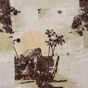 Natural Issue Hawaiian Shirt Mens Sz XL Yellow Brown Beach Palm Trees Cruise