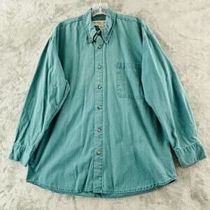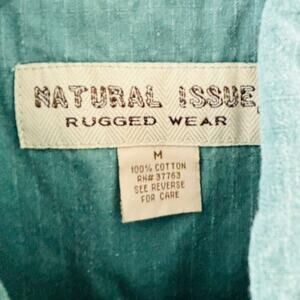 Natural Issue Rugged Wear Button Shirt Mens M Green Pinstripe Long Sleeve