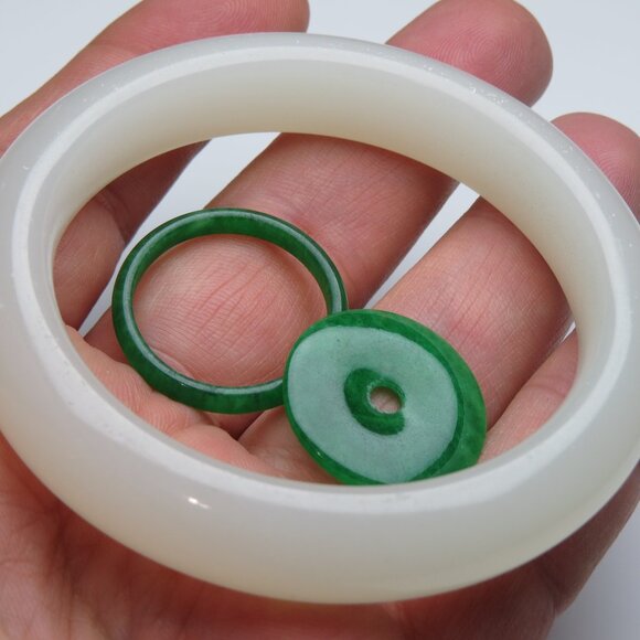 "Natural Jade Bangle + Jade Ring & Donut 57mm"