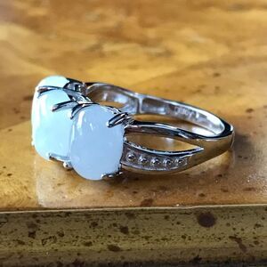Natural Jade Sterling Silver Trilogy Ring Size 6