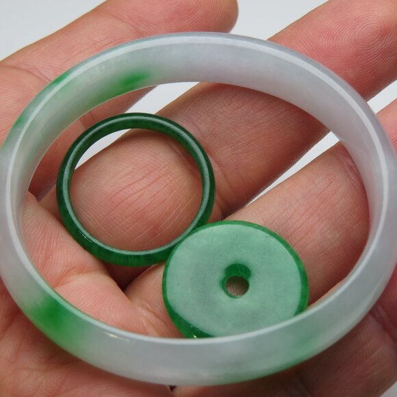 "Natural Jade bangle + REE Jade Ring & Jade Donut 57mm "