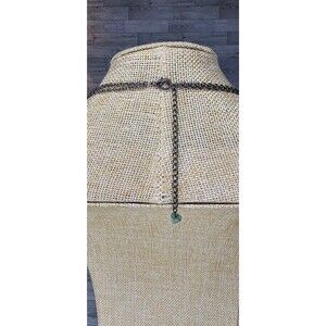 Pre-owned and in excellent condition. Double strand layered necklace features chips of green jadeite with a large square pendant on a gunmetal chain with matching lobster clasp. All stones were tested using Presidium Gem Tester II and confirmed as Jadeite.