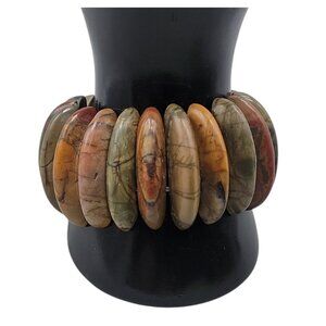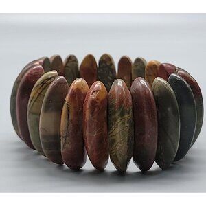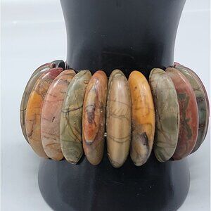 Natural Jasper Stretch Bracelet Multicolor Half Moon Wedges Green Red Orange 8"