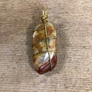 Natural Jasper Pendant. Handcrafted as a hobby of mine. Wire wrapped in Gold time wire. Every piece is unique. This is Pendant only no chain.