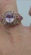 There are no words for this beautiful ring. The kunzite is the perfect color and clarity, and the pink sapphires are perfectly paired. There are also small white zircons accenting the setting. This is a solid sterling silver ring with 18k rose gold overlay. Size is a true 7.