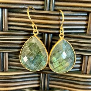 Natural Labradorite Gemstone & Gold Dangle Earrings