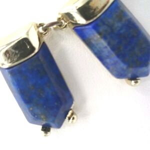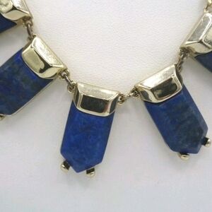 Gorgeous signed Natural lapis lazuli gemstone panel statement necklace in gold tone metal by Ann Taylor Loft, 1" drop, 18" length, very good condition