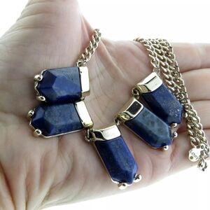 Natural Lapis Lazuli Gold Tone Panel Fringe Necklace Ann Taylor Loft