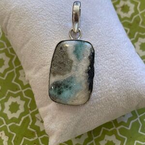Natural Larimar Rectangle Silver Plated Pendant White Blue Grey Black –Brand New