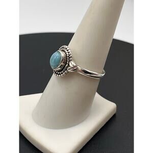 Natural Larimar Ring 925 Sterling Silver Handmade Oval Cabochon Gemstone Sz 8