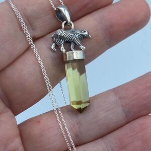 Natural Lemon Topaz Point Sterling Silver Bear Necklace