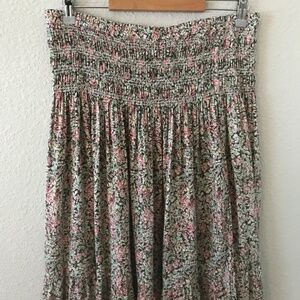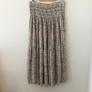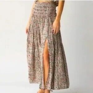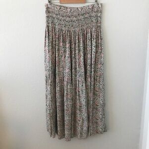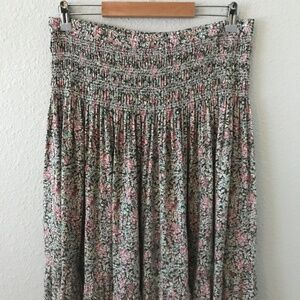 Natural Life Angelina Ditsy Floral Maxi Side Slit Smocked Skirt XL Boho Flowy