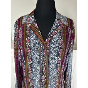 Natural Life Ansley Button Down Shirt Dress Size M Long Sleeve Boho Preppy