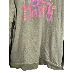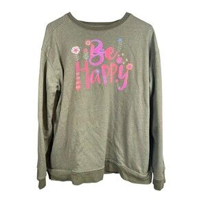 Natural Life Be Happy Sweatshirt Womens Medium Green Pullover Crewneck