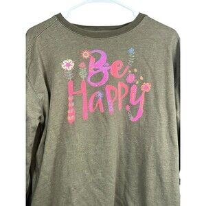 Natural Life Be Happy Sweatshirt Women’s Medium Green Pullover Crewneck
