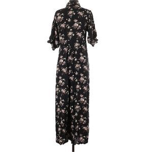 Natural Life Black Floral Collared Wide leg Jumpsuit Black Floral with pockets
