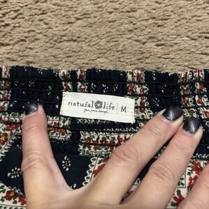 Natural Life Blue Red Floral Midi Skirt Size M Patchwork Print Casual Bohemian. Condition is Pre-owned - Excellent. Shipped with USPS Ground Advantage.