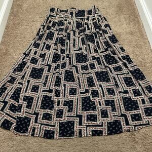 Natural Life Blue Red Floral Midi Skirt Size M Patchwork Print Casual Bohemian