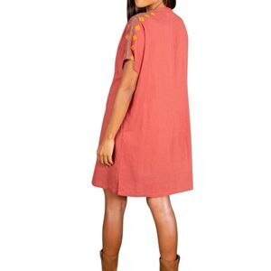Natural Life Boho Cotton Embroidered Tassel Dress size L Short Sleeve Floral