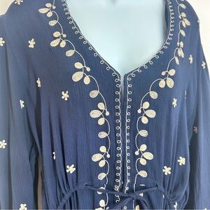 Natural Life Brae Embroidered Navy Midi Maxi Dress Size L