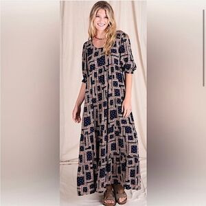 Collette has comfort, style and adapts to any season or occasion! She'll be your new “throw on and go” for any time of year! This cute maxi dress has perfectly puffed sleeves and full, flowy tiers that keep you comfy in a pretty, feminine style.