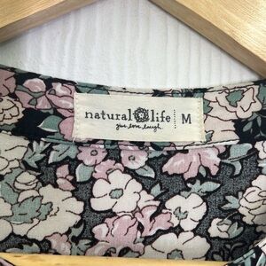 Natural Life - Colorful Floral Short Sleeve Tiered Half Button Maxi Dress Medium