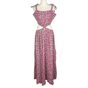 Natural Life Courtney Maxi Dress Cutout Smock Back Tie Straps Rayon Size XL