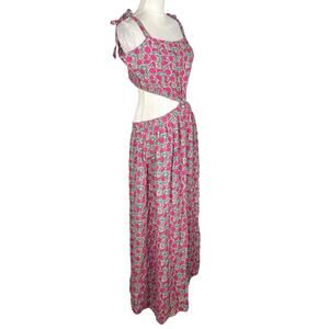 * Features: Tie straps, smocked back, cutout sides, maxi length