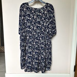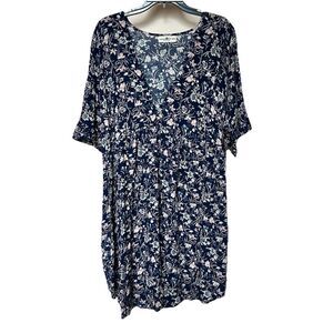 Natural Life Dress L / XL Blue Floral Boho Flowy Mini Babydoll Empire Waist Y2K