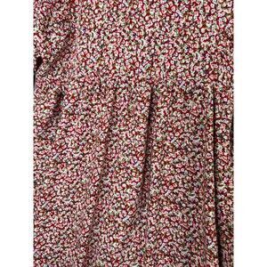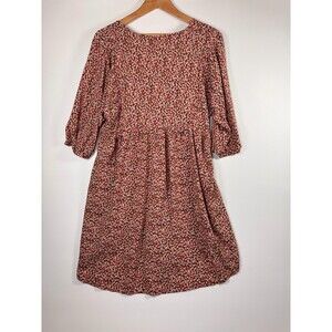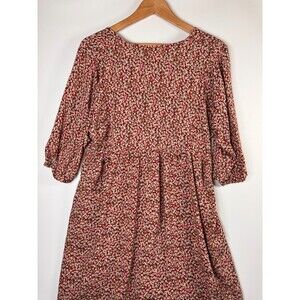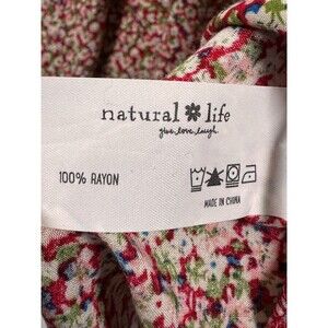 Natural Life Dress Womens Medium Red Pink Floral Rayon Knee Length Boho Peasant