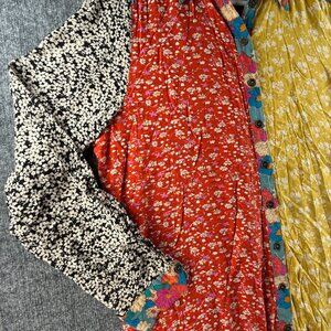 Natural Life Floral Button Up Dress Large Colorful Boho Long Sleeve Rayon Women