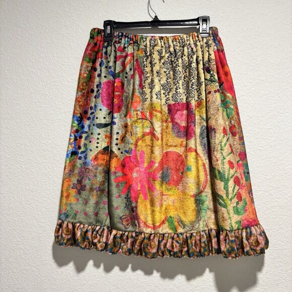 Natural Life Floral Patchwork Print S/M Ruffle Hem Towel Wrap Bohemian