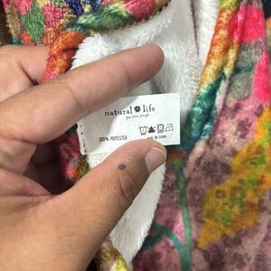 The Natural Life Floral Patchwork Print S/M Ruffle Hem Towel Wrap is a stylish and comfortable robe for women. Made with a vibrant floral pattern and a ruffle hem accent, this bohemian-themed robe is perfect for lounging at home or adding a trendy touch to your sleepwear collection. The multicolor design and regular size make it a versatile piece that can be worn for various occasions.