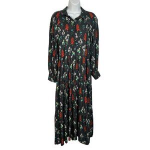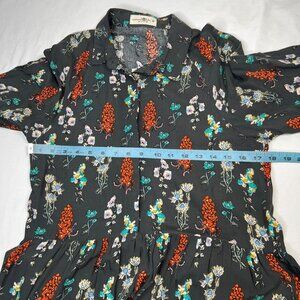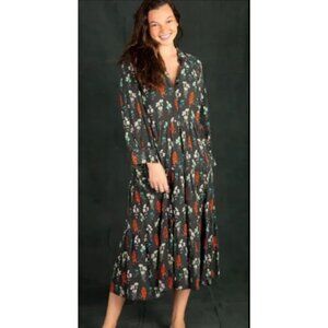 Natural Life Florence Midi Dress Collared Long Sleeve Floral Charcoal Bouquet M