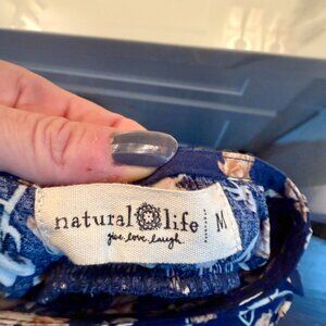 Natural Life Golden Eye Wide-Leg Jumpsuit- Navy Tan Floral Medium