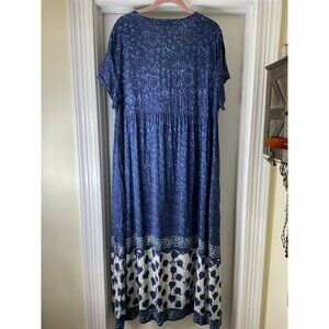 Natural Life Hand Designed Boho Floral Print Deep V-Neck Maxi Dress Size XL