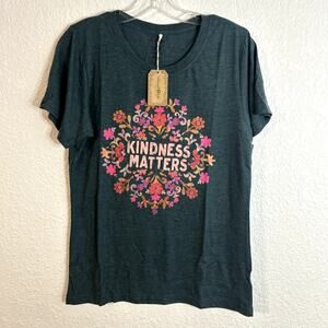 Natural Life Kindness Matters Graphic Tee Womens Size Large Teal Pink NWT