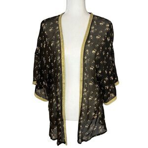 Natural Life Lightweight Kimono. Short Sleeves. Brown and Gold. One Size. NEW!!