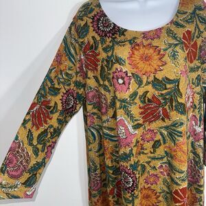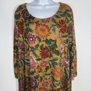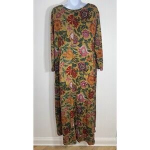 Natural Life Lottie Sweater Knit Maxi Dress Yellow Tan Pink Floral Women XL